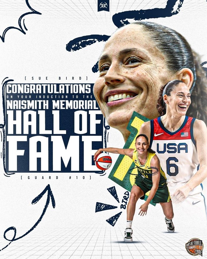 9月7日讯 今天,WNBA传奇球星苏-伯德正式入选奈史密斯名人堂,掘金官方晒图祝贺。